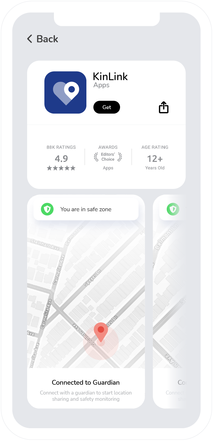 Your location is tracked, never sold and is only shared with your dependent or guardian you've securely connected to. Kinlink doesnt keep, log, analyze or share your location with anyone other than who you securely connect to with your unique code and PIN.