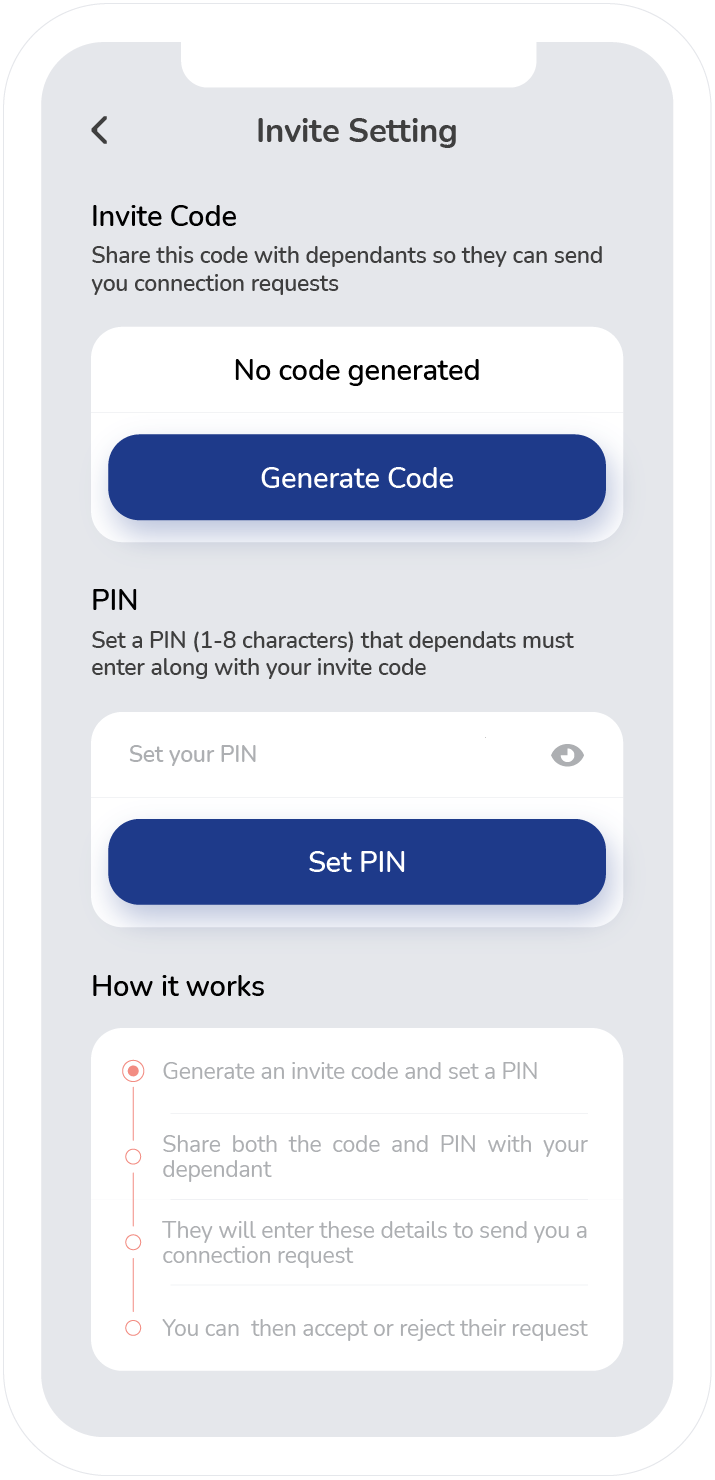 Simply install the app on both devices. Log into your device as a Guardian. Then log into your dependent's device as a Dependent. Add them using a secure code and pin generated in the Guardian app. That's all there is to it.